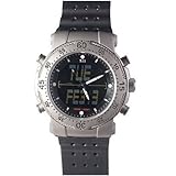 Rugged 5.11 Tactical Titanium HRT Watch... made specifically for the needs of law enforcement! Only the highest quality materials, plus SureShot ballistic calculator for accurate shooting on the fly! It's sophisticated point-of-impact shooting solutions, right there in the Watch... simply input your known ballistics data (bore height, ballistics coefficient, muzzle velocity, zero range), then add your environmental data (range, temp., altitude, incline), and the SureShot calculator will give you shooting adjustment in MILS, TMOA, or SMOA. Tough as nails, too! This LE-tuned Watch can take quite a beating. Built around a light, tough titanium case, with a scratch- resistant and glare-free crystal face. Sealed for water resistance up to 90'. And featuring beefed-up titanium pins, made to withstand the strain of a wrestling match. Totally rugged, resilient through-and-through, and outfitted with all the features the man on duty deserves. Time to check out some features: Rock-solid titanium case for lightweight strength; Rubber and leather interchangeable wristbands; Digital and analog readouts; Daylight-chargeable luminescent hour, minute, and second markings give you an analog reading in the dark; Controlled backlight lets you see your data when you need it; Digital day and date, with 2 digital time zones; Audible alarm; Hourly chime; Countdown timer; Digital chronograph; Uni-directional bezel. Order yours today! 5.11 Tactical Titanium HRT Watch